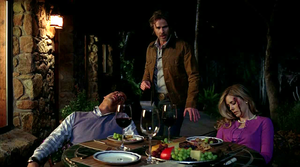 Other Plots: Sam meets up with Suzanne and Emory at Merlotte’s. He arrives that evening for a run with them (like #oldtimes) and finds them both dead – a plot from the 5th Sookie Stackhouse novel ‘Dead as a Doornail’. Alcide tells Gordon and Barbara Pelt about Debbie, blaming the death on Marcus, the deceased Shreveport packmaster. Terry and Patrick go to South Dakota to find Eller. A flashback to the Iraqi war reveals Eller initiating a fire exchange ending with an entire village being slaughtered. The duo find Eller’s underground hideout and are taken captive.